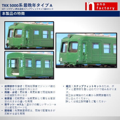 TKK5000系 最晩年タイプ A Nゲージボディ3両未塗装SFキット基本セット